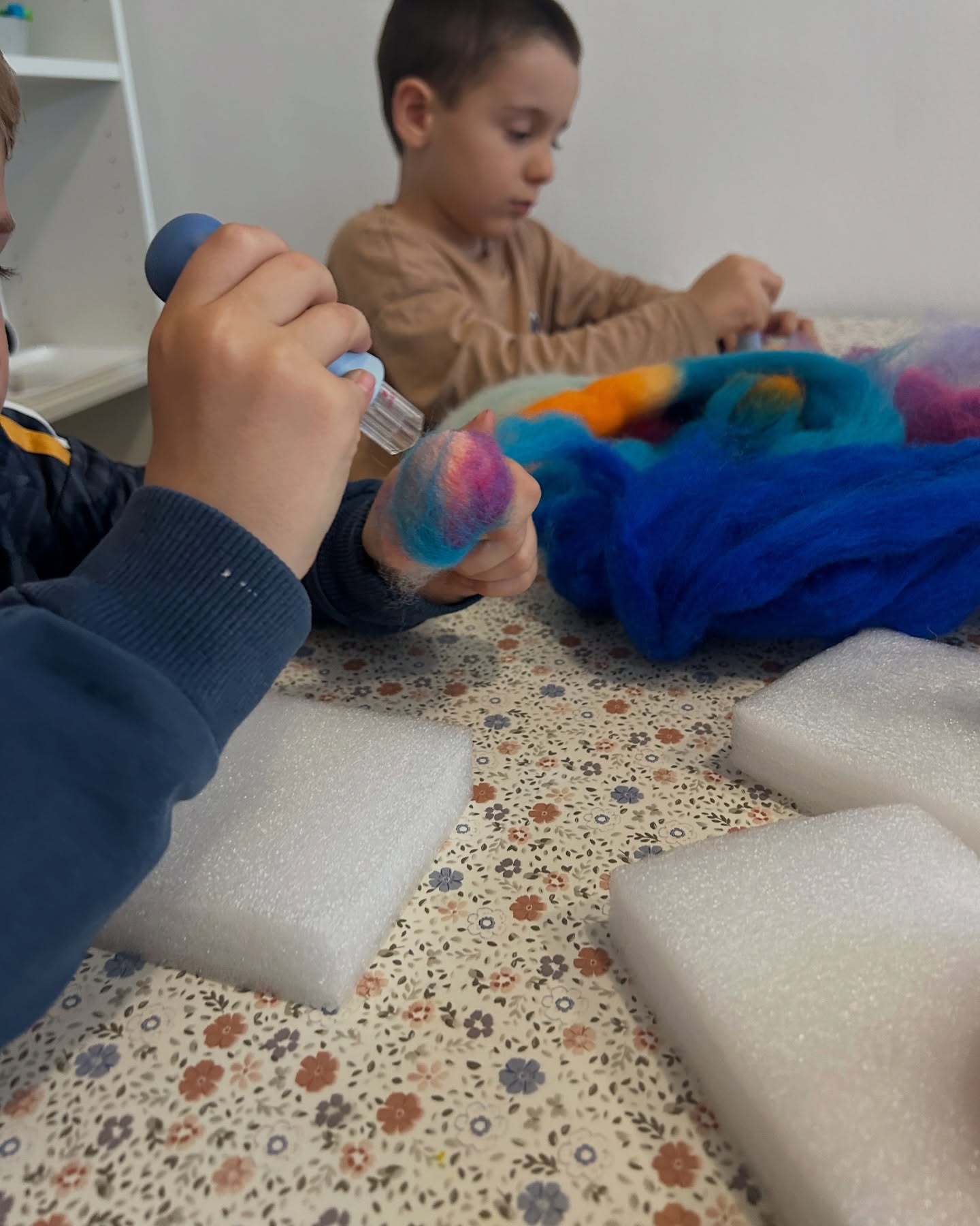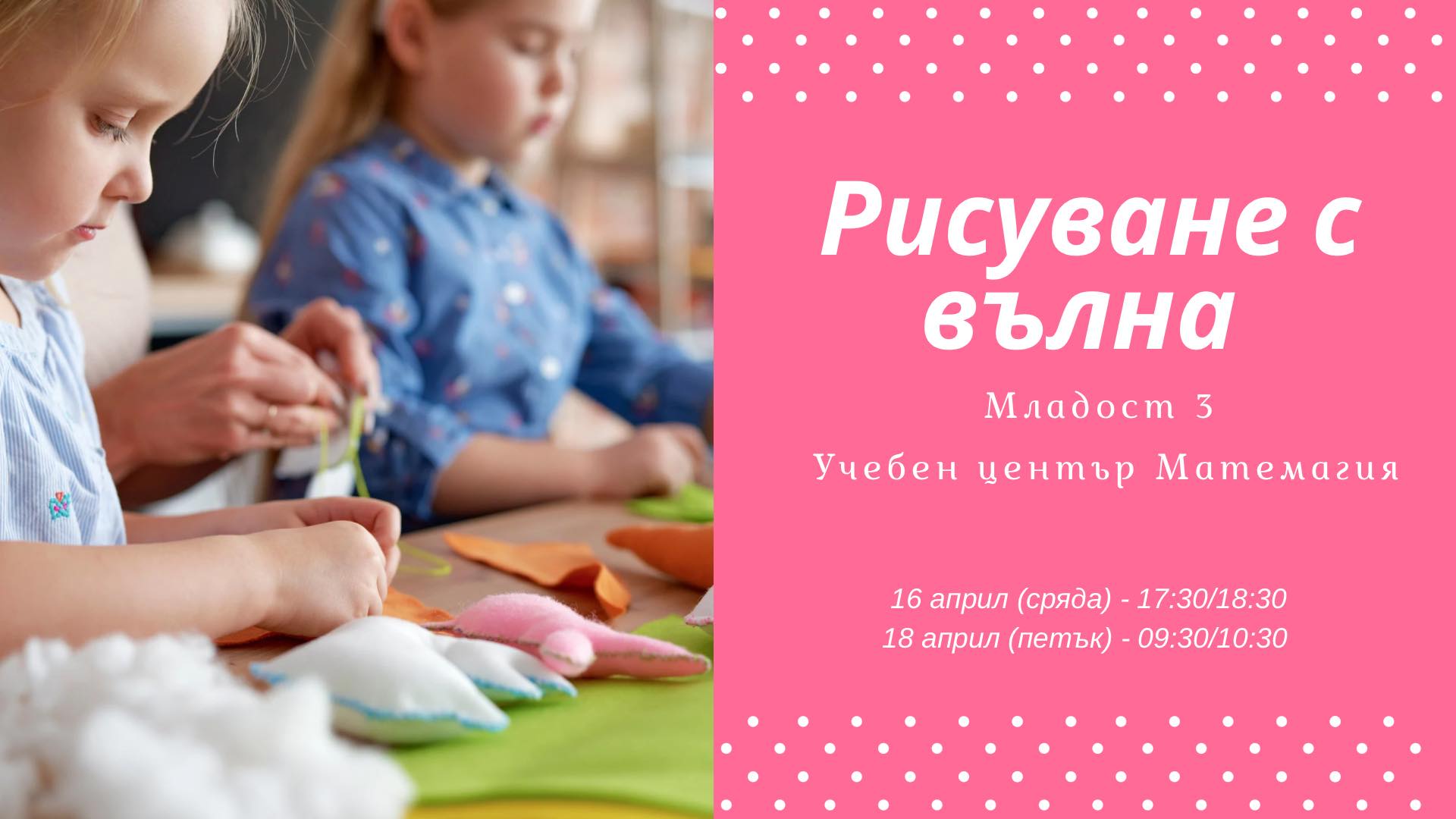 Малките художници създадоха картини с меки цветни нишки, които се подредиха като истинска вълнена мозайка. Работата с вълна развива фината моторика, въображението и сетивността, а крайният резултат е топло, меко и уникално произведение на изкуството!